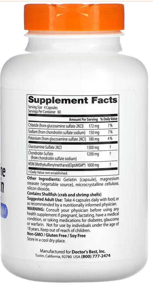 Doctor's best 葡萄糖胺軟骨素 MSM,含 OptiMSM,240 粒素食膠囊(需預訂,收款後,7天發貨)